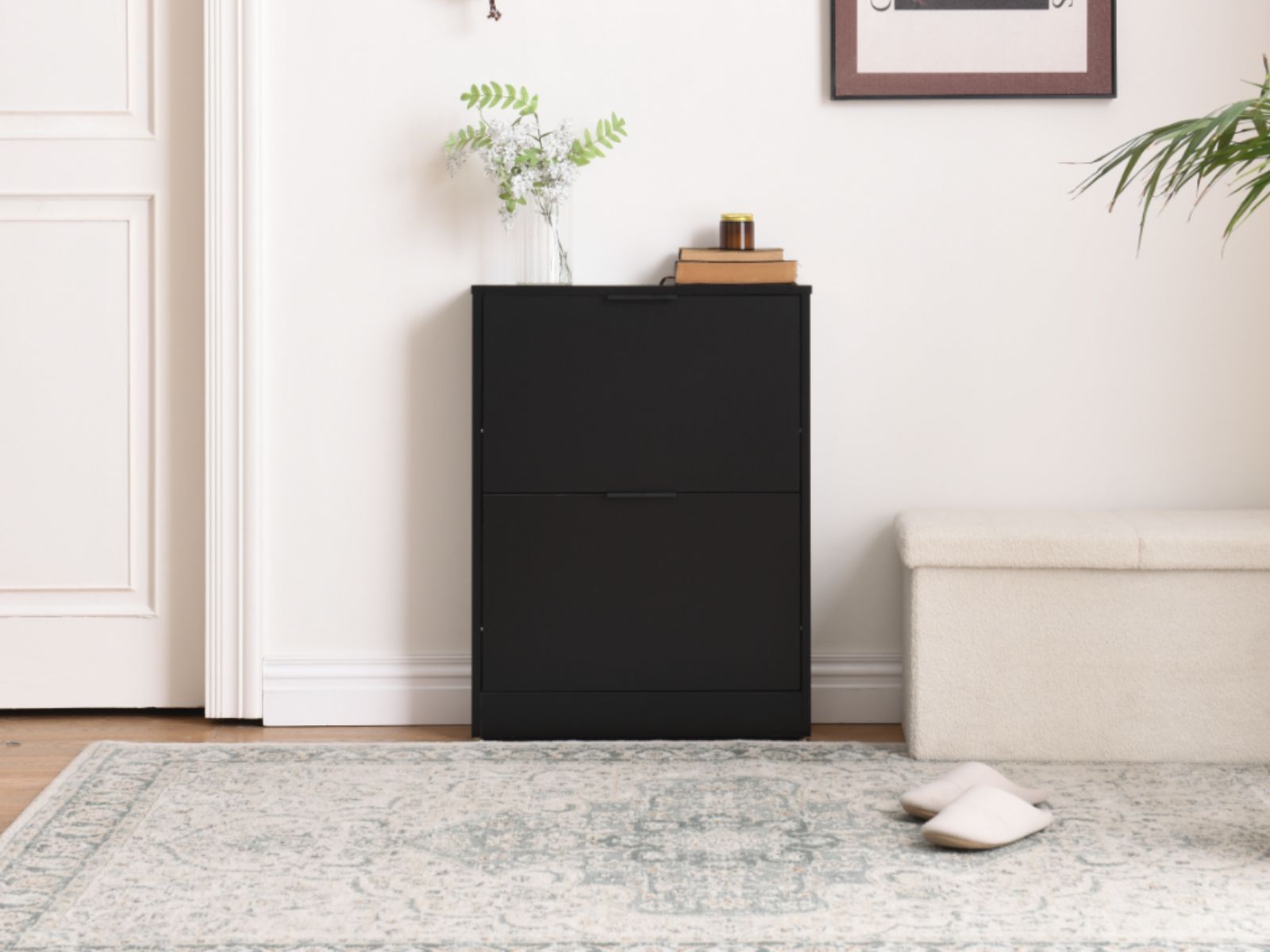 Kompakt und praktisch: Das schlanke Design macht diesen Schuhschrank zur perfekten Wahl für schmale Flure, kleine Ecken oder neben der Haustür – stilvoll und platzsparend.